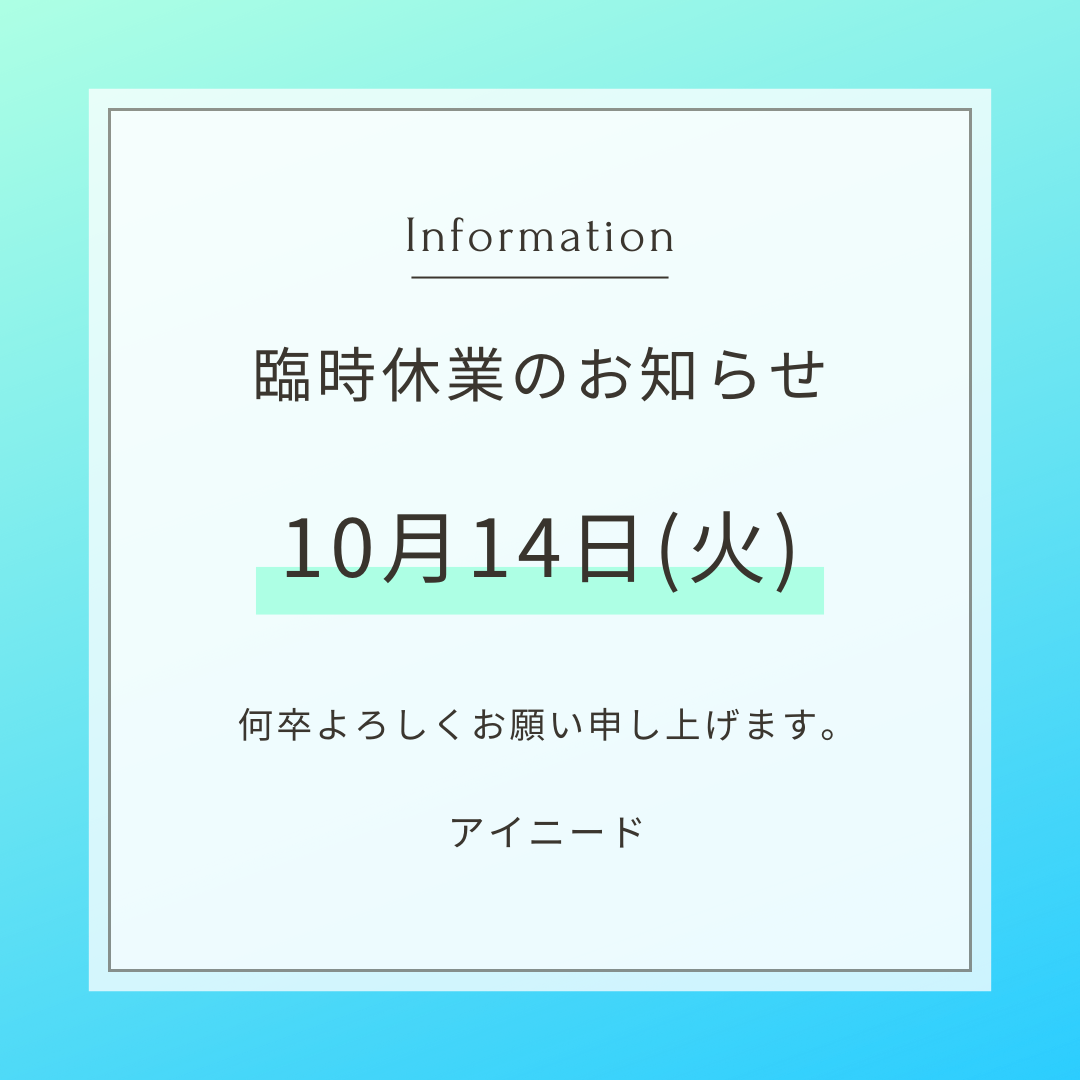 10月14日(火)  臨時休業とさせていただきます。